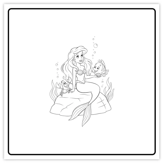 Mermaid on Rock with Starfish Coloring Page
