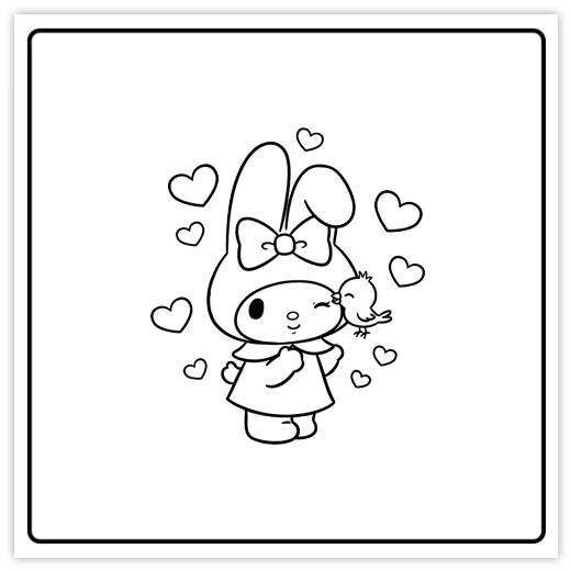 Totoro, Girl, and Rabbit Fishing Coloring Page
